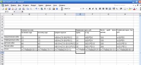 Таблицы из которых взяты данные отмечены справа от данной таблицы. Формулы расчетов рис 6.