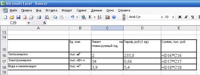 Рис 5. Расчет коммунальных платежей. Таблица 20. Смета расходов городской поликлиники на 2005 год