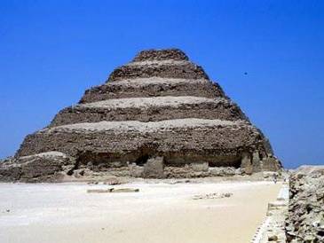 Рисунок 2 – Пирамида Джосера Погребальный комплекс Джосера, спроектированный и возведенный родичем и верховным советником фараона Имхотепом, состоит из самой ступенчатой пирамиды, под которой находится погребальная камера, и нескольких храмов и более мелких культовых построек, объединенных общей стеной. В плане этот громадный мавзолейный комплекс представляет собой прямоугольник. Современная реконструкция позволила воссоздать макет этого шедевра древней архитектуры, в котором все постройки гармонично дополняют одна другую и создают идеальный ансамбль. Поразителен и художественный аспект этого погребального комплекса. Внешняя и внутренняя отделка элементов конструкции зданий обработана «под дерево». Каменные перемычки и балки, каменные колонны внутри зданий повторяют не только внешний вид, но и пропорции, присущие деревянным элементам. Глазурованные плитки, которыми была отделана часть помещений, расписаны так же, как плетеные циновки, украшавшие стены обычных домов египтян. Сама пирамида Джосера, очевидно, представляет собой в конструктивном плане переходный этап от мастабы к пирамиде. Во времена Имхотепа, первого египетского инженера-строителя, чье имя сохранилось для потомков, камень, видимо, только начинали широко использовать для строительства монументальных сооружений, и технология еще не была разработана. Лишь позднее, во времена IV династии, были возведены Великие пирамиды Гизы – усыпальницы царей IV династии Хеопса, Хефрена и Микерина. Сами по себе эти три пирамиды уже являются лучшей иллюстрацией мастерства египетских строителей и стремительного прогресса архитектурной и инженерной мысли египтян. Крупнейшая из трех – пирамида Хеопса – представляет собой сооружение высотой сто сорок семь метров. Угол между гранями пирамиды почти равен золотому сечению. В древности пирамида была облицована полированным известняком, однако со временем облицовочные плиты отвалились или были содраны и использованы на других строительствах.