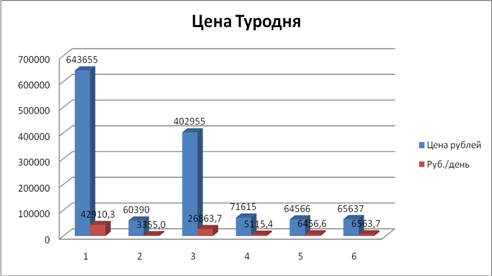 2.5.5 Сопоставление нового и одного из исходных туров по качественным и ценовым показателям для одного и того же периода времени. Новый турпродукт "Москва - Красноярск" имеет важное конкурентное преимущество в предлагаемой экскурсионной программе, которая входит в стоимость тура. Детальная проработка экскурсионных программ. Новый турпродукт удовлетворяет потребностям туристов, выявленных на основе исходного турпродукта " TRANS - SIBERIANCLASSICROUTE". Кроме того, новый турпродукт спроектирован с учетом недостатков исходного турпродукта: Помощь туристам в получении визы, так же оформление медицинской страховки, для безопасности наших потенциальных туристов и одним из важнейших отличий является отсутствие гостиниц с неподобающим уровнем обслуживания. Другим критерием конкурентоспособности турпродукта является цена, что особенно актуально при оценке цена - качество. Более того, низкая цена является психологическим фактором позволяющим привлечь новых клиентов. Стоимость нового турпродукта составила 117236 руб. /тур/чел. (13026 руб. цена туродня), что ниже цены исходного турпродукта "TRANS-SIBERIANCLASSICROUTE" где стоимость турпродукта составила 643655руб. /тур/чел. (42910 руб. цена туродня). Мы можем видеть чтонаш турпродукт выигрывает в цене практически в 3 раза, а по количеству и качеству услуг ни чем ни хуже. Заключение В процессе создания нашего курсового проекта мы уделили особое внимание анализу исходных турпродуктов: на основе которых наша компания создала новый, более востребованный и рентабельный туристический продукт. Во время создания нового турпродукта нами были выявлен ряд недостатков исходного турпродукта. В нашем новом, созданном турпродукте, мы попытались максимально грамотно скомпоновать разные по составу услуги, которые хотели бы видеть клиенты в одном турпродукте. При этом все оказываемые услуги мы объединили общей целью и концепцией, которая отображается в названии созданного нами турпродукта и в его описании. Нами было выявлено, что путём более детальной работы с клиентами и их потребностями можно создать новый, более проработанный и востребованный турпродукт. Данные которые мы получили для создания нашего турпродукта основаны на анализе фокус-группы и на комментариях туристов, на зарубежных сайтах. Во время выполнения этого курсового проекта, мы открыли новые способности и качества, а так же развили приобретенные умения, это и многое другое помогло нам создать наш турпродукт. Так же в процессе работы, мы смогли досканально проанализировать зарубежный рынок и понять что именно нужно современному клиенту от туристических продуктов. Исходя из этого мы уверены, что наш турпродукт будет востребован как на зарубежном туристическом рынке так и через несколько лет на Российском рынке, так как известно что Российский рынок развивается с небольшим отставанием. Из этого мы можем сделать вывод что иметь высокая динамика к росту и рентабельности для нас. Созданный нами турпродукт имеет возможность к трансформированию (Изменению и дополнению, которые возможно потребуются для него в будущем). Ведь никогда нельзя стоять на месте. Из за закона возвышающейся потребности клиентов нам просто необходимо постоянно улучшать и искать новые решения для нашего турпродукта. Главным преимуществом нашего нового турпродукта по сравнению и исходн