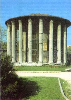 Республиканская архитектура представлена рядом замечательных памятников. Среди них ордерные храмы, круглые и прямоугольные в плане. Круглый храм — моноптер — состоял из цилиндрической основы, окружённой колоннадой. Вход к храму был по этрусскому обычаю только с одной, торцевой, стороны. Круглый храм Сивиллы, или Весты, в Тиволи, под Римом, окружён коринфскими колоннами. Фриз украшен рельефами с изображением традиционного римского мотива — бычьих черепов, «букраниев», с которых свисают тяжёлые гирлянды. Это был символ жертвоприношения и памяти. Ордер в таких храмах отличался жёсткостью рисунка и суховатостью: колонны утратили присущую им в Греции пластичность. Прямоугольные римские храмы также отличались от ордерных греческих, как показывает хорошо сохранившийся храм Фортуны Вирилис на Бычьем форуме в Риме. У него тоже вход лишь с одной стороны, ионические колонны завершаются капителями скромного рисунка. Фронтон совершенно «негреческий», без скульптур внутри его тимпана и с богатыми, строго вычерченными профилями. Великолепны римские мосты II - I вв. до н.э. Так, мост Мульвия помимо его практических достоинств (он Храм Геркулеса. II в. до н.э. Бычий Форум. простоял более двух тысяч лет) отличается выразительностью образа. Мост зрительно как бы опирается на воду полукружиями арок, опоры между которыми для облегчения веса прорезаны высокими и узкими проёмами. На арках сверху лежит карниз, придающий мосту особую законченность. Мост словно шагает от берега к берегу непрерывно идущими арками: он динамичен и одновременно устойчив. Рим сильно застраивался в Средневековье и Новое время, и поэтому его древний облик скрыт под толщей наслоений. Частично внешний вид римского города можно представить на примере Помпеи — италийского города, который вместе с городами Геркуланум и Стабии погиб в 79 г. н.э. в результате извержения вулкана Везувий. Погребённый под пеплом город случайно обнаружили при строительстве водопровода в XVII в. С 1748 г. до наших дней продолжаются его раскопки. Город имел регулярную планировку. Прямые улицы обрамлялись фасадами домов, внизу которых были устроены лавки-таберны. Обширный форум был обнесён прекрасной двухэтажной колоннадой. Там находились святилище Исиды, храм Аполлона, храм Юпитера, большой амфитеатр, построенный, как и у греков, в природном углублении. Рассчитанный на двадцать тысяч зрителей, он значительно превосходил потребности жителей города и предназначался также для приезжих (население Помпеи составляло не более десяти тысяч человек). В городе было два театра. Замечательны помпейские дома — «домусы». Это были прямоугольные сооружения, которые тянулись вдоль двора, а на улицу выходили глухими торцевыми стенами. Главным помещением был атриум (от лат. atrium — «закопчённый», «чёрный», т. е. помещение, почерневшее от копоти), который выполнял священную функцию. Рим при основании имел в самом центре культовую яму — «мундус», куда все жители бросали плоды и горсть земли со своей старой родины. Открывалась она лишь один раз в году — в день Подземной богини или не открывалась совсем. Каждый дом повторял эту модель: в атриуме часто было отверстие в центре крыши — камгшювий. Под ним находился бассейн для сбора воды, родственный мундусу, — имплювий. В целом атриум выполнял функцию «мирового столпа», связыва