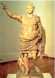 Первым правителем, открывшим путь к единовластию, был внучатый племянник Цезаря Октавиан, прозванный Августом (Блаженным). Цезарь усыновил его незадолго до своей гибели. Когда же Октавиана провозгласили императором (27 г. до н.э.), это означало, что ему вручают высшую военную власть. Официально он всё ещё считался одним из сенаторов, хотя и «первым среди равных» — принцепсом. Время правления Октавиана называется принципатом Августа. С тех пор римское искусство начало ориентироваться на идеалы, которые насаждали правители. До конца I в. н.э. царят две династии: Юлиев — Клавдиев и Флавиев. Основы имперского стиля начал закладывать Август. Сохранившиеся портреты представляют его энергичным и умным политиком. Характерен высокий лоб, слегка прикрытый чёлкой, выразительны черты лица и маленький твёрдый подбородок. Мастера теперь отбрасывают всё внешнее, малозначимое, не следуют слепо натуре. Древние авторы пишут, что Август был слабого здоровья и часто кутался в тёплые одеяния, но изображали его могучим и мужественным. Известная статуя из Прима Порта представляет его оратором, обращающимся к народу. Август облачён в одеяние императора: богато украшенный панцирь (на котором в обрамлении богов, небес и преисподней парфяне возвращают римлянам отнятые у них ранее знамена), тяжёлый, обёрнутый вокруг тела плащ, а в руке он держит императорский жезл. У его ног на дельфине сидит крошечный Амур, сын Венеры — по преданию, прародительницы Юлиев. Статуя величава и торжественна. Особую приподнятость ей придают черты греческого стиля — босые ноги и непокрытая голова. Стремление выйти за свойственные римлянам рамки прозаического восприятия жизни очевидно и в других памятниках. При Августе был создан Алтарь Мира — памятник воссоединения сторонников нового режима и потерпевших поражение республиканцев. Алтарь представлял собой самостоятельное здание без крыши, ограждавшее жертвенник. Украшавшие ограду рельефы были разделены на два яруса фризом с меандровым орнаментом (ленточный орнамент, как правило, изломанная под прямым углом линия). Нижний изображал застилающие всё поле стебли, листья и завитки Древа Жизни с птичками и разной живностью на нём: верхний представлял торжественное шествие, включавшее членов императорского дома. Царит греческая изокефалия (головы изображённых находятся на одном уровне), однако в группу вторгаются оживляющие ритм фигуры детей разных возрастов. Отдельные персонажи изображены оборачивающимися, они как бы обращаются к зрителю (что было неприемлемо для классического греческого памятника). Кроме того, изображения наделены индивидуальными чертами, портретны. Сам Август говорил о себе, что он принял Рим глиняным, а оставляет каменным. О красоте возведённых при нём зданий свидетельствует искусно выполненный карниз храма Конкордии, который стоял на Римском Форуме. Его отличает богатый декор: камень ещё сохраняет свои архитектурные членения, но начинает превращаться в дивную ажурную резьбу. В эпоху Августа был популярен третий пампейский стиль (конец I в. до н.э. — 50-е гг. I в. н.э.). Его иногда называют «канделябровым». Мастера вновь вернулись к плоским декоративным орнаментам. Среди архитектурных форм преобладали лёгкие ажурные сооружения, напоминающие высокие металлические канделябры (подсвечники), между ними