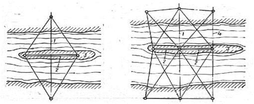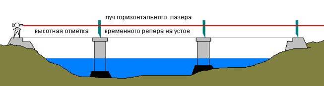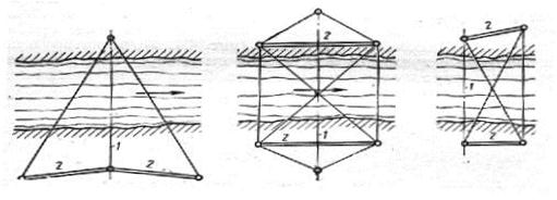 перспективно применение фотоэлектронных устройств для регистрации положения лазерной плоскости при исполнительной съемке, так как обеспечивает повышение точности и частично автоматизирует процесс измерений. Так, в Чехословакии при строительстве железнодорожного моста применялась лазерно-телевизионная система (Lastelmodt) для исполнительной съемки пролетных строений. Эта система состоит из лазера, неподвижной марки для ориентирования луча, подвижной марки и дисплея для автоматической регистрации положения луча на марке. Контроль положения конструкций осуществлялся при помощи подвижной марки относительно лазерного луча, ориентированного по направлению оси моста с заданным уклоном. По исследованиям (на расстоянии до 340 м) точность регистрации положения лазерного луча составила 1—5 мм Наряду с основным, строгим способом оценки точности проекта сети, ориентированным на использование ЭВМ, существуют и приближенные способы, позволяющие, сравнивая различные варианты построения сети, особенно в полевых условиях, оперативно принимать достаточно обоснованные решения. Такие приближенные способы уже не являются универсальными, а ориентированы на конкретные виды сетей. При строительстве мостового перехода на местности определяют и закрепляют положение центров мостовых опор и других элементов моста, а также производят детальную разбивку при возведении опор и монтаже пролетных строений. Для этих целей строят специальную геодезическую разбивочную сеть, обеспечивающую выполнение разбивочных работ на всех стадиях строительства мостового перехода. Кроме того, рационально расположенная и надежно закрепленная разбивочная сеть может служить основой и для наблюдений за деформациями моста в процессе его строительства и эксплуатации. В зависимости от способа разбивки центров опор и условий местности плановую разбивочную сеть создают следующими методами :