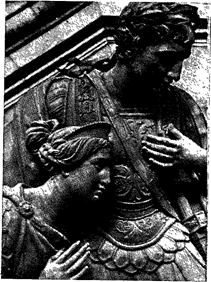 Император Феодосии. Фрагмент горельефа западного фронтона. Фотография. 1978. По контракту скульптор был обязан «строго держаться религиозного характера и следовать в манере Рафаэлю и Пуссену». Однако Витали пошел по иному пути. Он придал облику апостолов хотя и народные, но несколько идеализированные черты, что сближало эти произведения с монументально - декоративными работами скульпторов Мартоса, Пименова и Демут-Малиновского. Статуи предстояло расположить на большой высоте, и было очень важно правильно поставить их. Это удалось вполне. Силуэты статуй отличаются четкостью и строгостью линий. Атрибуты изображены так, что с любой точки обозрения не сливаются с очертаниями фигур. Фигуры апостолов снизу воспринимаются на фоне неба (расположены на высоте тридцати метров), поэтому особенно тщательно продуманы их пропорции. Отношение головы и общей высоты взято 1:6. Для того чтобы статуя при таких пропорциях не потеряла монументальности, скульптор увеличил ширину плеч (1:3), а вытянутые вперед кисти рук сделал более крупными. Свободные одежды апостолов ложатся тяжелыми крупными складками, которые своими линиями выявляют движение этих фигур. Разработке фактуры