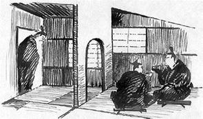 Чайная комната (Сукия) не претендует быть ничем другим, как лишь только маленьким домиком, соломенной хижиной, как мы ее называем. Слово "Сукия" значит "приют" фантазии" /значение первоначальный идеографов/. Впоследствии разные тимейстеры (мастера чая) вставили китайские знаки на место прежних, соответственно их концепции чайной комнаты, и термин "Сукия" может теперь означать "убежище пустоты" или же "убежище несимметрического". Это - приют фантазии, поскольку он представляет воздушную постройку, предназначенную укрывать поэтический импульс. Это - приют пустоты, поскольку он лишен всяких украшений, за исключением тех, которые помещаются в комнате, чтобы удовлетворить некоторым эстетическим потребностям момента. Это - убежище несимметрического, поскольку оно посвящено культу Несовершенного, и в нем намеренно оставлено кое-что незаконченным, чтобы дать место полету завершающей фантазии. Начиная с 16-го столетия, идеалы тиизма оказали такое влияние на внутреннее убранство обыкновенного японского дома, в смысле крайне простоты и целомудрия в замысле обстановки, что иностранцу он может показаться почти пустым. Первая чайная комната, как таковая была созданием Сенно-Соэки, который обычно известен под своим позднейшим именем Рикьу, и который был величайшим из всех тимейстеров. В шестнадцатом столетии под покровительством Таико Хидейоши, он установил и довел до высокой степени совершенства обрядовую сторону чайной церемонии. Размеры чайной церемонии. Размеры чайной комнаты были предварительно определены Иово, знаменитым тимейстером пятнадцатого столетия. Чайная комната, в своем первоначальном виде представляла просто часть обыкновенной гостиной, отгороженную ширмой для целей чаепития. Отгороженная часть называлась "Какой" (загородка), название, и сейчас применяющееся в отношении чайных комнат, которые устроены в доме и не представляют независимых построек. Сукия состоит из чайной комнаты собственно, предназначенной вмещать не больше, чем 5 лиц - число, наводящее на мысль об изречении: "Больше чем граций, меньше, чем муз": из передней /мидсуйя/, где моется и расставляется чайная посуда, перед тем, как внести ее в комнату; портика /макиаи/, где ожидают гости, пока их не пригласят войти в чайную комнату, и садовой дорожки /роджи/, которая соединяет макиаи с чайной комнатой. Внешний вид чайной комнаты очень прост. Она меньше, чем самый маленький из японских домов, а материалы, из которых она строится, предназначены производить впечатление утонченной бедности. Но надо помнить, что все, что в целом является результатом глубокого артистического замысла, и что детали были выработаны с тщательностью, может быть большей, чем приходится затрачивать при постройке богатейших дворцов и храмов. Хорошая чайная комната стоит дороже, чем обыкновенный особняк, потому что выбор материалов, а также выполнение требуют большой предусмотрительности и точности. Действительно, строительные рабочие, занятые в этой отрасли, образуют особый и пользующийся почетом класс среди ремесленников, так как их работа более тонка, чем работа изготовителей лакированных шкафов. Чайная комната не только отличается от произведений западной архитектуры, но и представляет резкий контраст с классической архитектурой самой Японии. Восточные древние благородные постройк