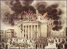 Пасмурным морозным утром 11 марта 1853 года по неизвестной причине в театре начался пожар. Пламя мгновенно охватило все здание, но с наибольшей силой огонь бушевал на сцене и в зрительном зале. "Страшно было смотреть на этого объятого огнем гиганта, - описывал пожар очевидец. - Когда он горел, нам казалось, что перед глазами нашими погибал милый нам человек, наделявший нас прекраснейшими мыслями и чувствами..."