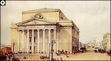 В начале XIX века сложилась сеть русских Императорских театров, которые управлялись «министерством двора Его Императорского Величества». В подчинении двора было 3 театра в Петербурге – Александрийский, Мариинский и Михайловский – и 2 в Москве- Большой и Малый. С появлением пьес А.Н. Островского, И.С. Тургенева, прозы Ф.М. Достоевского поэзия Некрасова в русскую культуру пришёл реализм. Актёрское искусство изменялось вместе с драматургией, ломая старые представления о том, что такое правда на сцене. 16 ноября 1859 года был день премьеры в Малом театре пьесы «Гроза» Островского. Вокруг спектакля разразилась буря. Первой исполнительницей роли Катерины была прекрасная актриса Л.П. Никулина – Косицкая. С пьесами Островского на сцену ворвалась стихия русской жизни, новый, сочный и современный язык. В пьесах Островского актёры Малого блистали на протяжении всех последующих десятилетий. Г.Н. Федотова, М.Н. Ермолова – замечательные актрисы малого тиара. Русские артисты первой половины XIX века М.С. Щепкин, П.С. Мочалов, В.А. Каратыгин остались в памяти потомков как фигуры из легенды. Щепкин сыграл почти 600 ролей в пьесах Шекспира, Мольера, Гоголя, Островского и Тургенева. Он одним из первых начал утверждать реализм в русском театре, он создал правду на русской сцене. Мочалов – прямая противоположность Щепкину. Он играл главные роли в пьесах русской и западной драматургии – Гамлета Шекспира, Карла Моора в драме Шиллера «Разбойники», Чацкого в «Горе от ума». В постановках пьес русские актёры создали образы, вошедшие в историю театрального искусства. Публика восхищалась Екатериной Семёновой, Алексеем Яковлевым. Эти актёры совершенно перевоплощались в представляемое лицо. Постепенно Малый театр стал специализироваться на драматических постановках, а Большой на опере и балете. Большой Петровский театр 1825-1853 гг. Открытие Большого Петровского театра 6 января 1825 года было обставлено очень торжественно. Зрители, посетившие в тот вечер новый театр, были потрясены благородством архитектурного замысла и его воплощением, невиданными масштабами здания, красотой отделки его зрительного зала.