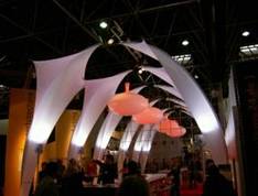 Реферат: Освещение выставочной экспозицииРеферат: Освещение выставочной экспозицииСодержание: Введение 1. Содержательная часть 1.1 Требования, предъявляемые к световой среде выставочных помещений 1.2 Использование естественного света в выставочных экспозициях 1.3 Системы искусственного освещения выставочных помещений 1.4 Виды осветительной арматуры и светильников, применяемые для освещения выставочных экспозиций Заключение Введение Планируя будущую выставку, нужно хорошо представлять, что же такое вообще такое выставка. Выставка – это своеобразный рассказ на конкретную тему, рассказ образный, представленный зрителю изобразительным и документальным материалом. Выставка – это показ, основная цель которого состоит в просвещении публики путем демонстрации средств, имеющихся в распоряжении человечества для удовлетворения потребностей, а также прогресса достигнутого одной или нескольких областях его деятельности, или будущих перспектив. Целью каждой выставки является информирование, причем информация имеет или дидактический, или коммерческий, или представительский характер. Одно из необходимых условий выставки – единство замысла. Другим необходимым условием выставки является ее актуальность. Еще одно весьма актуальное условие выставки – она должна эмоционально воздействовать на зрителя, взволновать его. 1. Содержательная часть 1.1 Требования, предъявляемые к световой среде выставочных помещений Одной из главных задач освещения выставочных помещений является обеспечение благоприятных условий восприятия экспонатов, определяемых как освещением самих экспонатов, так и освещением окружающего пространства. Освещение экспонатов характеризуют средним значением КЕО, равномерностью освещенности в выставочной зоне помещения и направлением падения светового потока на плоскость выставочной зоны. При освещении окружающего пространства должны обеспечиваться требуемое распределение освещенности в помещении; ограничение слепящего действия световых проемов; устранение инсоляции помещения; требуемое распределение яркости в помещении. Направление падения светового потока на выставочную зону зависит от расположения световых проемов относительно выставочной зоны и характеризуется углом j (рисунок 23). Угол падения прямого света на плоские экспонаты (картины, плакаты, гравюры, ткани и т. п.) при расположении их на стенах помещения или вертикальных стендах выбирают в пределах от 45° до 75° по отношению к горизонтали. При углах, больших 75°, на экспонатах создаются тени (от рамок и фактуры), искажающие облик экспонатов; при углах менее 45° отблески от экспонатов с блестящей фактурой будут попадать в глаза посетителей. Угол падения прямого света на объемные экспонаты выбирают в пределах от 30° до 50°; такое направление падения света в наилучшей степени выявляет форму и детали объемных экспонатов. В выставочных помещениях световые проемы по возможности не должны попадать в поле зрения посетителей при обзоре экспонатов; для ограничения слепящего действия световых проемов необходимо применять жалюзи и экраны. При нормальном удалении посетителя от экспонатов (равном 1,5 высоты экспозиционной зоны) и ориентации глаз на середину выставочной зоны угол b (рисунок 1), под которым виден нижний край светопроема, должен быть не менее 