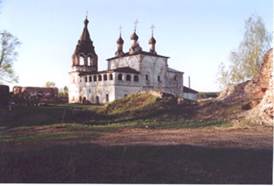 Церковь Рождества Христова в селе Борисоглеб. XVII в. Современное фото В северной части монастыря располагалась пятиглавая кубической формы Вознесенская церковь, очень близкая по своим архитектурным формам к Благовещенскому, Троицкому и Воскресенскому соборам в Муроме. Ее стены были декорированы двумя ярусами проемов и ниш, обрамленных богатыми наличниками. Окна располагались несимметрично, что придавало своеобразие зданию. В южной части монастыря стояла одноглавая Никольская церковь, построенная в самом конце XVII столетия. В ее архитектуре отразился переходный момент от старых традиций к стилю сооружений Петровского времени, а резные разнообразные детали не имели аналогий в муромской архитектуре. Памятники архитектуры Мурома - страницы его многовековой истории. Их значение для русской культуры неповторимо. Они вошли в сокровищницу нашего древнего искусства и занимают место в ряду с прославленными памятниками зодчества Москвы, Ярославля, Углича, Ростова, Костромы, Рязани и других древнерусских городов XVI - XVII веков. |