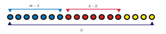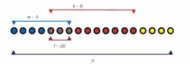 Пусть возможные исходы опыта сводятся к совокупности случаев, которые для наглядности представлены на рис. 1 в виде N символов.
