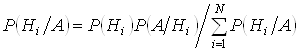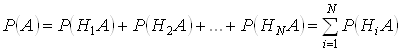 т.е. вероятность события А вычисляется как сумма произведений вероятности каждой гипотезы на вероятность события при этой гипотезе. Эта формула носит название формулы полной вероятности. Так как гипотезы H1, H2,…, HN образуют полную группу событий, то событие А может появиться только в комбинации с какой-либо из этих гипотез: А = H1А + H2А + …+ HNА. Так как гипотезы H1, H2,…, HN несовместны, то и комбинации H1А, H2А, … HNА также несовместны. Применяя к ним теорему сложения, получим: