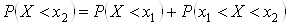 Однако такую таблицу невозможно построить для непрерывной СВ, поскольку для нее каждое отдельное значение не обладает отличной от нуля вероятностью. Для количественной характеристики распределения используют зависимость вероятности события X < x, где x – некоторая текущая переменная, от x. Эта функция называется функцией распределения СВ X и обозначается F(x): F(x) = P(X < x). Функцию распределения F(x) иногда называют интегральной функцией распределения или интегральным законом распределения. Функция распределения существует для всех СВ – как непрерывных, так и дискретных. Сформулируем некоторые общие свойства F(x): 1) F(x) есть неубывающая функция своего аргумента, т.е. при x2 > x1 F(x2) > F(x1); 2) на –¥ F(x) равна нулю, т.е. F(–¥) = 0; 3) F(¥) = По определению, F(x) при некотором x есть вероятность попадания СВ X в интервал от –¥ до x. Для дискретной СВ распределение F(x) имеет ступенчатый вид, причем величина каждого скачка равна вероятности значения, при котором имеется скачок F(x). При решении практических задач часто необходимо вычислять вероятность того, что СВ примет значение, заключенное в некоторых пределах, например от x1 до x2. Это событие называется «попаданием СВ X на участок от x1 до x2». Выразим вероятность этого события через функцию распределения СВ X. Для этого рассмотрим два события: – событие А, состоящее в том, что X < x2; – событие В, состоящее в том, что X < x1; – событие С, состоящее в том, что x1 < X < x2. Учитывая,