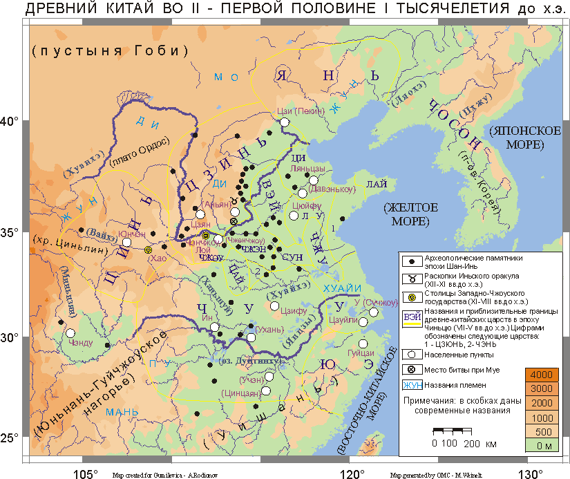 И В отличие от Западного Восточный Китай не имеет таких мощных горных хребтов. Здесь большую часть территории составляют низменности, равнины приморья, к которым примыкают средних размеров горы и горные плато. Восток Китая имеет более благоприятные природные условия: довольно мягкий климат, разнообразная растительность. Эти условия способствовали тому, что именно в этой части страны появилась древнейшая земледельческая культура и первые очаги китайской цивилизации, а также само государство. Китай обладает большой сетью водных артерий, но главные реки сосредоточены, в основном, на востоке страны; они берут свое начало на западе и текут в восточном направлении. Понятно, что долины рек являются самыми плодородными и наиболее населенными районами страны. Древние жители Китая тоже предпочитали речные долины. Суровые естественные условия нередко служат мощным стимулом для возникновения и роста цивилизации. Например, если сравнить долины Янцзы и Хуанхэ, то первая значительно более приспособлена для циклического сезонного земледелия, чем вторая. Казалось бы, древняя китайская цивилизация должна была возникнуть именно в долине Янцзы. Но она возникла в долине Хуанхэ. Хуанхэ — главная река Северного Китая. Она несет свои воды более четырех тысяч километров. Ее бассейн был центром древнейшей китайской цивилизации. Хуанхэ — бурная река; несколько раз она меняла свое русло, затопляла огромные пространства, принося неисчислимые бедствия населению. Однако самой большой рекой Китая является Янцзы (Янцзыцзян), которая имеет более пяти тысяч километров в длину. Центральный Китай — это и есть бассейн Янцзы. Около двух тысяч километров тянется главная водная артерия Южного Китая — Сицзян. В древности почти весь Китай был покрыт лесами. Недра страны изобилуют полезными ископаемыми. Моря, озера и реки богаты рыбой. Весьма благоприятен для сельского хозяйства климат восточной части Китая, так как на лето приходится наибольшее количество атмосферных осадков, а осень теплая и сухая. Западный Китай отличается коротким знойным летом и долгой холодной зимой. В древние времена основными районами расселения китайцев были области среднего и нижнего течения реки Хуанхэ и равнина, которая примыкает к Чжилийскому (Бохайскому) заливу. Здесь преобладали плодородные аллювиальные почвы. Иными словами, почвы наносные, образовавшиеся из речного ила. Они, да еще умеренный климат Великой Китайской равнины, способствовали развитию земледелия. Огромные пространства в Северном и Северо-Западном Китае занимают лессовые почвы. Здесь древние племена находились в менее выгодном положении. Лесс — это отложения минеральной пыли, которую сдувают с гор зимние муссоны. Частицы-путешественницы содержат питательные вещества, например, органические остатки или легкорастворимые щелочи. Это позволяет обходиться без удобрений. К сожалению, в районах лессовых плато дождей выпадает мало, что для успешного земледелия требует искусственного орошения. Именно в силу указанных природно-климатических различий племена, жившие в районах лессовых плато, имели менее развитое земледелие, чем племена, обитавшие в нижнем течении Хуанхэ. ФИНИКИЙСКАЯ ЦИВИЛИЗАЦИЯДревняя Финикия, самая древняя приморская цивилизация, занимала полосу приморья вдоль северной части восточно