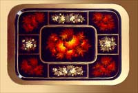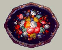 Г) "Метальная лавка" Нижний Тагил, отметивший 275-летие со дня основания, является родиной промысла лакирования и росписи металлических подносов, столиков, шкатулок, кувшинов. Во многом утраченные традиции старых уральских умельцев, оживлявших металл своей росписью, успешно пытается восстановить новое поколение мастеров.