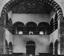 В наиболее благоприятном положении оказалась в то время восточная часть Германии – Саксония, далекая от больших рек, по которым норманны пускались в свои разбойничьи набеги. Здесь с начала X века воцарилась саксонская династия королей, и уже в 962 году один из них – Оттон I получил в Риме императорскую корону. Опираясь на авторитет Рима, Оттон I и его последователи не имели последовательной программы возрождения античных традиций. Саксонские земли были очень удалены от Рима, и никаких следов античной цивилизации там не существовало. С другой стороны, каролингская эпоха оставила в наследство искусству X века достаточное количество ценных художественных идей. Дальнейшее укрепление позиций церкви привело к расширению церковного строительства. Лучшими саксонскими церквями являются: монастырская церковь св. Кириака в Гернроде и церковь св. Михаила в Гильдесгейме. Эти церкви с гладкими толстыми стенами и массивными башнями имеют суровый грозный вид. Сохраняя основные черты раннехристианской базилики, трехнефную структуру и деревянные покрытия, они в то же время унаследовали и развили то новое, что содержалось в каролингской архитектуре – четкость наружных, прямоугольных и цилиндрических объемов трансептов, апсид, башен и главное, сами башни у фасадов и над средокрестием.