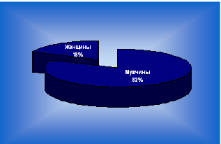 Таким образом, на предприятии трудятся 1181 женщин, что составляет 18% от общего числа и 5447 мужчин, что составляет 82% в возрасте от 18 до 60 лет. Наглядно это отображено на рисунке 1.