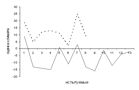 Соотношение индивидуальных оценок данных каждым сотрудником группы, хорошо прослеживается на графике показателей социально-психологического климата (рис. 5).