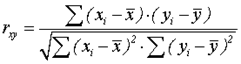 где: хi — значения, принимаемые в выборке X, yi — значения, принимаемые в выборке Y;