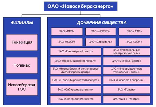 Рисунок 2.2 - Копоративное управление деятельностью ОАО «НОВОСИБИРСКЭНЕРГО» 2.1 Характеристика филиала «Генерация» ОАО «Новосибирскэнерго» Филиал «Генерация» является структурной единицей ОАО «Новосибирскэнерго», находится по адресу: г. Новосибирск, Ленинский район, ул. Станционная 4. Дата рождения акционерного общества ОАО "Новосибирскэнерго", образованного на базе Новосибирского производственного объединения энергетики и электрификации - февраль 1993 года. В настоящее время ОАО «Новосибирскэнерго» - одна из самых динамично развивающихся российских энергокомпаний, которая первой в отрасли осуществила реструктуризацию, создав собственную рыночную инфраструктуру за счет активного привлечения инвестиций. Компания основывает свою деятельность на общечеловеческих демократических принципах: достоинстве личности, взаимном уважении и признании права всех клиентов на получение наших товаров и услуг - электрической и тепловой энергии, заявляет о готовности к сотрудничеству между отдельными лицами, группами и институтами нашего общества. Сегодня ОАО «Новосибирскэнерго» успешно адаптируется к новым условиям хозяйствования и устойчиво развивается как компания западного типа, открытая к диалогу, с прозрачной отчетностью (с 2002 г. в формате международных стандартов финансовой отчетности МСФО), уже получившая западное кредитование. Социальные ориентиры компании сегодня – это, прежде всего, полное энергообеспечение региона, что даст возможность развивать новый бизнес, создавать новые рабочие места, обеспечивать более высокий уровень жизни. Это социальная ответственность компании перед потребителями, которая заключается в предоставлении повсеместно качественного продукта, отвечающего международным стандартам в области энергетики. Это заботаоб энергобезопасности, экологии, ресурсосбережении. Филиал «Генерация» структурное подразделение ОАО «Новосибирскэнерго», в настоящее время имеет организационно – правовую форму в виде открытого акционерного общества. Вся энергосистема представляет собой единый технологически сложный организм, осуществляющий производство, передачу и распределение тепловой и электрической энергии. Среднесписочная численность всего персонала филиала «Генерация» 1233 человека. По своим технико-экономическим показателям в части выработки электроэнергии большинство электростанций филиала «Генерация» конкурентоспособны с электростанциями ФОРЭМ. Показатели экономичности работы электростанций находятся на уровне показателей идентичного оборудования по отрасли. Основной целью всех подразделений филиала «Генерация», таких как подразделение № 2, подразделение № 3, подразделение № 4, подразделение № 5, Барабинская ТЭЦ является выработка энергии в необходимом объеме. Подразделение № 2, подразделение № 3, подразделение № 4, подразделение № 5, Барабинская ТЭЦ организует приемку топлива по количеству и качеству от поставщиков, складирование его и своевременную подачу качественного топлива в бункера котельного цеха. Основные потребители тепло- и электроэнергии – промышленные предприятия (29%), транспорт и связь(21%), население (17%), ЖКХ (10%) и сельское хозяйство (7%). Диаграмма потребителей энергии показана в приложении А. В 2004 году на предприятии введена система менеджмента качества. Сертификац