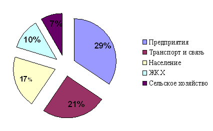 Рисунок 2.1 - Потребители энергии Основные потребители тепло- и электроэнергии – промышленные предприятия (29%), транспорт и связь(21%), население (17%), ЖКХ (10%) и сельское хозяйство (7%),