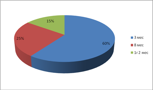 Рис. 1. Процентное соотношение конфликтности военнослужащих экспериментальной группы в соответствии со сроком службы.