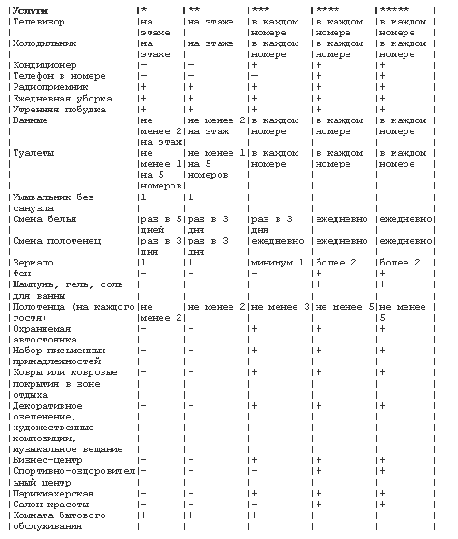 ПРИЛОЖЕНИЕ 3 Таблица 3 Услуги, оказываемые рестораном