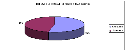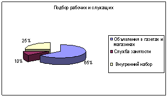 Рисунок 2. Структура источников набора кадров в АКБ РосБанк Из приведенных диаграмм видно, что при наборе персонала руководство АКБ РосБанк практически не обращается к специалистам – службам занятости, рекрутинговым фирмам, а осуществляет набор преимущественно из объявлений в газетах. В исследуемой организации присутствует ротация кадров только вертикального характера: сотруднику предлагается более высокая должность на испытательный период, в случае, если он не справляется с представленной должностью, - он возвращается на предыдущее место работы. Причем подбор из внутренних источников осуществляется в основном при наборе сотрудников на руководящие должности, хотя в некоторых случаях эффективность от этого только снижается, поскольку для управления крупной организацией инициативность и креативность важнее, чем трудность адаптации нового сотрудника-менеджера в коллективе. Таким образом, необходимо отметить, что в организации отсутствует четкая, эффективная система подбора персонала. Процесс набора персонала в АКБ РосБанк осуществляется в два этапа: первый этап – ознакомление с резюме и рекомендательными письмами принимаемого на работу сотрудника или, при отсутствии резюме, заполнение специального заявления, содержащего; второй этап – личное собеседование с сотрудником отдела кадров. Проведение собеседования — самый сложный этап отбора, за короткое время необходимо получить информацию по самым разным темам: § уточнить биографические данные; § выявить общеобразовательный уровень и практический опыт работы; § нарисовать краткий психологический портрет; § прояснить ожидания кандидата от нового места работы. В процессе собеседования видно умение кандидата себя вести, излагать свои мысли – способен ли кандидат ясно понимать свою ответственность перед выбором профессии и перед коллективом, способен ли достойно отстаивать свои права. Данная система недостаточно эффективна, так как она не имеет четкой, ясной структуры, по которой бы каждый раз проходил процесс подбора персонала, при такой высокой текучести кадров необходимо, чтобы процесс подбора контролировался непосредственно директорским составом. При данном подходе процесс проходит более рационализировано – отдел кадров принимает и рассматривает заявление, директорский состав проводит личное собеседование. Анализ эффективности использования персонала начнем с определения количественного и качественного персонала организации (обеспеченность предприятия трудовыми ресурсами и их качественный состав). В таблицах приведен анализ головного подразделения АКБ РосБанк г. Нерюнгри. человек труд мотивация персонал Характеристика движения рабочей силы Таблица 2.1