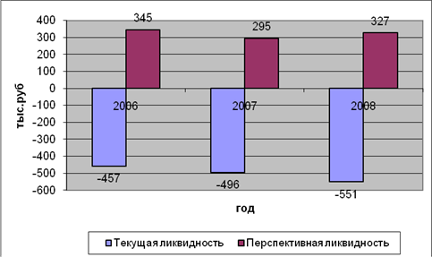 Сравнение абсолютно ликвидных и быстрореализуемых активов со срочными и краткосрочными обязательствами показывает, что для анализируемой организации условия ликвидности баланса не выполняются. Это говорит о ее неплатежеспособности. Абсолютные показатели текущей ликвидности имеют отрицательные значения. Это говорит о том, что абсолютно ликвидные и быстрореализуемые активы не превышают краткосрочные обязательства организации. Значения перспективной ликвидности свидетельствуют о том, что медленно реализуемые активы больше долгосрочных обязательств.
