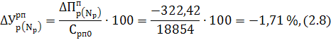 На изменение анализируемого показателя негативное влияние оказало увеличение себестоимости на продукцию (этот фактор уменьшил рентабельность на 35,35 %). Существенное положительное влияние на рентабельность реализованной продукции оказало увеличение цен на продукцию. Далее проанализируем изменение другого важного показателя работы предприятия – рентабельности продаж. Для этого воспользуемся формулой уровня рентабельности продаж реализованной продукции