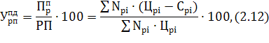 Для анализа уровня рентабельности реализованной продукции воспользуемся формулой