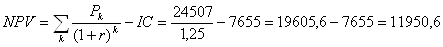 Рассчитаем чистую приведенную стоимость проекта. Чистая приведенная стоимость проекта представляет собой сумму денежных поступлений от реализации проекта, приведенных к стоимостному уровню базового периода: