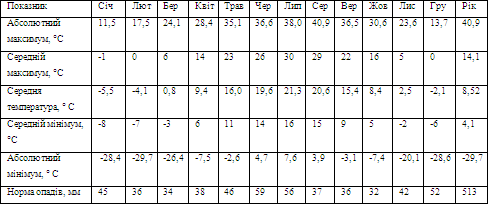 Найнижча середньомісячна температура повітря в січні (мінус 14,5 ° C) зафіксована в 1950 р., найвища (1,5 ° C) - в 2007 р. Найнижча середньомісячна температура в липні (18,4 ° C) спостерігалась у 1976 р., найвища (25,6 ° C) - в 1936 р. Абсолютний мінімум температури повітря (мінус 38,2 ° C) зафіксовано 11 січня 1940 р., Абсолютний максимум (40,1 ° C) - 10 серпня 1930 В останні 100-120 років температура повітря в Дніпропетровську, так само як і в цілому на Землі, має тенденцію до підвищення. Протягом цього періоду середньорічна температура повітря підвищилася щонайменше на 1,0 ° C. Найтеплішим за весь період спостережень виявився 2007 р. Найбільше підвищення температури відбулося в першу половину року. У середньому за рік у Дніпропетровську випадає 513 мм атмосферних опадів, найменше їх у березні та жовтні, найбільше - у червні та липні. Мінімальна річна кількість опадів (273 мм) спостерігалась у 1951 р., максимальна (881 мм) - в 1960 р. Максимальну добову кількість опадів (82 мм) зафіксовано 23 серпня 1960 р. в середньому за рік у місті спостерігається 127 днів з опадами; найменше їх (по 7) у серпні та жовтні, найбільше (16) - у грудні. Щорічно у Дніпропетровську утворюється сніговий покрив (грудень-лютий, іноді листопад-березень), проте його висота незначна; нерідкі відлиги. Відносна вологість повітря в середньому за рік становить 74%, найменша вона (61%) у серпні, найбільша (89%) - у грудні. Найменша хмарність спостерігається в серпні, найбільша - у грудні. Найбільшу повторюваність у місті мають вітри з півночі, найменшу - з північного заходу і південного заходу. Найбільша швидкість вітру - у січні-лютому, найменша - влітку. У січні вона в середньому становить 5,4 м / с, у липні - 3,7 м / с. Кількість днів з грозами в середньому за рік дорівнює 22, градом - 5, снігом - 53. Сучасна поверхню території України покрита молодими відкладеннями, що утворилися в четвертинний (антропогенового) період. Їхній вік - від кількох десятків до кількох сотень тисяч років. Вони поширені майже суцільний товщею потужністю в середньому 15 м (Максимум 100 м). Якщо ж подумки зняти цю товщу, то під нею будуть породи різного віку. Їх поширення відображає тематична геологічна карта України. Для створення такої карти не потрібно знімати товщу антропогенових відкладів. Про породах під ними можна дізнатися різними способами: Бурінням свердловин, вивченням стінок кар'єрів або відслонень (виходів порід на поверхню) на крутих берегах річок. Найдавнішими відкладами в геологічну будову України є докембрійські, Залягають на всій її платформної частини на різних глибинах, а в межах Українського щита - виходять на поверхню. Найбільшого поширення серед палеозойських порід мають відкладення кам'яновугільного періоду, Які потужною товщею наповнюють Дніпровсько-Донецька западина, а в Донбасі виходять на поверхню великий суцільний площею. Геологічна карта засвідчує відсутність на території України виходів на поверхню порід кембрійського і ордовицького періодів, дуже мале поширення силурійських і девонських (У долинах Дністра і його лівих приток на Поділлі), а також пермських (в Донбасі) відкладів. Мезозойські відклади залягають у Донбасі і Кримських горах. Зокрема породи крейдового періоду займають великі площі на заході (Волинь, Карпати) і північно-сході України. Найбільш поширеними на території України є кайнозойські відкладення. Палеогенові породи є на 