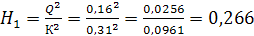 β – коефіцієнт регулювання циркуляції, при однаковому опорі секційних вузлів приймається 1,0