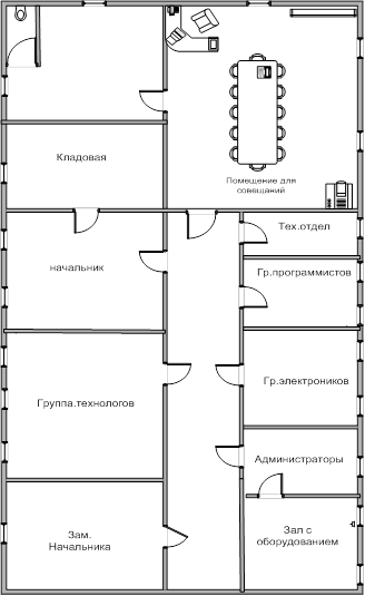 Принятые сокращения: ПД – персональные данные; КТ – коммерческая тайна; СТ – служебная тайна; ПЭМИ – паразитные электромагнитные излучения; ВА – виброакустический; ОЭ – оптико-электронный. 1.2 План объекта защиты, взаимное расположение других помещений