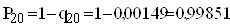 Виходить, що з 100000 чоловік до 20-літнього віку не доживають 149 чоловік. Розташовуючи показниками імовірності вмерти, страховик з достатнім ступенем упевненості може припустити, що протягом найближчого року з числа застрахованих у віці 20 років може вмерти 0,15%, а імовірність дожити до 21 року складе: