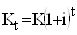 де К – первісна сума страхового фонду; t – фактор часу. З урахуванням доходів від вкладеного капіталу тарифні ставки в страхуванні життя заздалегідь занижуються на суму одержуваного доходу. Сума первісного внеску: