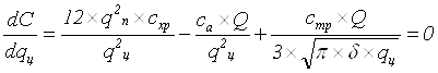 Для определения минимума функции общих затрат найдем ее первую производную по qц и приравняем ее нулю: