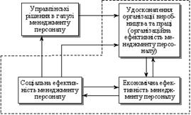 Рис. 1.1. Схема взаємодії складників ефективності менеджменту персоналу Звичайно, на ефективність діяльності організації справляють свій вплив різні чинники — внутрішні і зовнішні, об’єктивні і суб’єктивні. Однак усе залежить від людського чинника, від рівня конкурентоспроможності персоналу в цілому, від професіоналізму вищого менеджменту, його вміння долати вплив негативних зовнішніх чинників та розумно використовувати наявні ресурси, у першу чергу людські. Адже, як відомо, саме кадри все вирішують. Для потреб оцінювання ефективності менеджменту персоналу