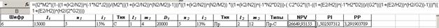 4. КОПИИ ЭКРАНА С ВЫЧИСЛЕНИЯМИ ПОКАЗАТЕЛЕЙ ЭФФЕКТИВНОСТИ ИНВЕСТИЦИОННОГО ПРОЕКТА В EXEL