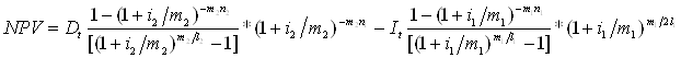 2. Построить финансовую схему реализации заданного инвестиционного проекта в соответствии с типом потоков инвестиций и доходов. 3. Построить аналитические выражения для вычисления показателей эффективности заданного инвестиционного проекта. Затем, на основе полученных выражений, построить соответствующие графики. 3.1. Построить аналитическое выражение для NPV (приведенного чистого дохода). 3.2. Вычислить значение NPV заданного