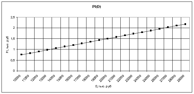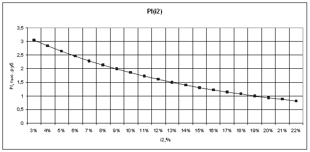 определяется из графика функции 3.9. Построить аналитическое выражение для PI (показатель рентабельности инвестиций). 3.10. Вычислить показатель рентабельности