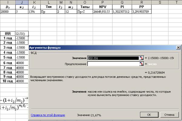 инвестиций заданного проекта. Построить в Excel графики зависимостей