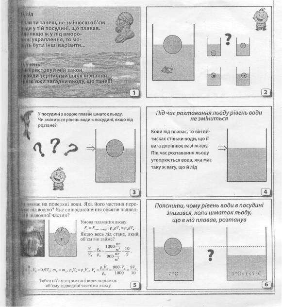 З таблиці видно, що в проблемній ситуації учні виконують всі головні пізнавальні дії, які ведуть до розв’язку проблеми, а вчитель лише спрямовує та керує цією пізнавальною діяльністю учнів. Проблемне навчання можна реалізувати не лише у вигляді проблемної ситуації, а й у вигляді проблемного викладу матеріалу вчителем. При проблемному викладі матеріалу вчитель на основі створеної проблемної ситуації формулює проблему та в ході подальших викладок розкриває шлях розв’язку проблеми та гіпотези. Проблемний виклад використовується тоді, коли в учнів недостатньо знань для самостійного аналізу проблемної ситуації, для постановки гіпотез. Наприклад, учні не можуть пояснити протиріччя між хвильовою теорією світла та основними закономірностями фотоефекту. Тому такий матеріал доцільно подати на основі проблемного викладу. Метод проблемного викладу слід використовувати й при ознайомленні учнів з фундаментальними дослідами. Наприклад, при розкритті досліду Майкельсона як фундаментального факту спеціальної теорії відносності, при вивченні в історичному аспекті моделей будови атому (модель Томсона, Резерфорда-Бора, сучасна модель атому) та в інших випадках. Частково-пошукові завдання При проблемному навчанні пізнавальну діяльність учнів будують таким чином, щоб вона пройшла крізь всі етапи творчого процесу. Проте найістотнішим моментом творчої діяльності є висловлення гіпотез та їх перевірка. Висловленню гіпотез та їх перевірці можна навчити й поза проблемним навчанням. Відповідні частково-пошукові завдання можна залучати й до евристичної бесіди, додаючи їй дослідницький характер, який має інтуїтивний аспект. Оскільки методи навчання фізиці відбивають методи наукових фізичних дослідів, то при вивченні матеріалу на основі індуктивних прийомів для розвитку інтуїтивного мислення доцільно пропонувати учням наступні завдання: 1. Завдання на передбачення результатів досліду. При виборі таких завдань необхідно продумати, які знання можуть використовувати учні при висловлюванні гіпотези. В якості основи для формування гіпотези можуть бути теорії, аналогії, життєві спостереження та ін. запас життєвих спостережень дозволяє учням до проведення дослідів висловлювати деякі припущення про причини, що впливають на розглядуване явище. Кожну з гіпотез перед перевіркою необхідно обговорювати; учнів повинні спробувати обґрунтувати своє припущення. Перевірку гіпотез можна виконувати або за допомогою демонстраційного досліду, або в ході лабораторної роботи. 2. Завдання на планування результатів експерименту. В тих випадках, коли залежність між величинами виводиться теоретично (дедуктивно) й дослід є лише підтвердженням цієї залежності, зручно ставити учням питання, що спрямована на планування досліду. Необхідно відмітити, що плануванню досліду треба вчити учнів не тільки під час вивчення нового матеріалу, а й при проведенні лабораторних робіт. 3. Завдання на передбачення принципу пояснення. Після демонстрації експерименту не слід одразу ж пояснювати його, краще запропонувати зробити це учням. Наприклад, поясніть, чому тиск насиченої пари не залежить від об’єму і т. ін. Ці питання спрямовують учнів на пошук принципу пояснення явища та одночасно є завданнями, що розраховані на творчу діяльність учнів. 4. Завдання на передбач