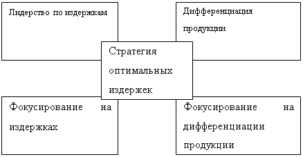 Рисунок 2. Базовые стратегии (по М. Портеру) 2.1 Лидерство по издержкамСуществует множество способов снижения издержек с одновременным поддержанием среднего по отрасли качества, некоторые из них связаны с движением по кривой опыта, опережая рост конкуренции, увеличением масштабов производства для достижения максимальной экономии, которую можно получить от такого увеличения. Основная суть двух этих эффектов состоит в том, что они подразумевают, что объем реализации является важной предпосылкой к достижению низкой себестоимости. Путь к достижению лучших результатов подразумевает захват и удержание большой доли рынка. Вследствие этого, когда в борьбе участвует более одной фирмы, то конкуренция за обладание рынком может в значительной степени подорвать любое преимущество, основанное на низкой себестоимости, если цены снижаются фирмами, стремящимися к достижению определенных объемов реализации. Низкая себестоимость может позволить фирме проводить при необходимости ценовую конкуренцию. Она также может являться источником прибыли, которая может быть реинвестирована в производство для улучшения качества продукции, в то время как цена на эту продукцию будет соответствовать средней цене по отрасли. Таким образом, не низкая себестоимость сама по себе предоставляет конкурентные преимущества, а возможности этой низкой себестоимости улучшают конкурентоспособность. То, что фирма является производителем продукции с низкой себестоимостью, должно оградить ее от воздействия пяти сил. Производитель с низкой себестоимостью занимает более выгодную позицию, позволяющую ему выжить во время ценовой войны, а осведомленность об этом может удержать от ценовой конкуренции конкурентов, у которых издержки выше. Низкие издержки отражают способность фирмы разрабатывать, выпускать и продавать сравнимый товар с меньшими затратами, чем конкуренты. Продавая товар по такой же (или примерно такой же) цене, что и конкуренты, фирма в этом случае получает большую прибыль. Так, корейские фирмы, выпускающие сталь и полупроводниковые приборы, одержали победу над зарубежными конкурентами именно таким образом. Они выпускают сравнимые товары с очень низкими издержками, используя низкооплачиваемую, но весьма производительную рабочую силу и современную технологию и оборудование, купленные за рубежом или изготовленные по лицензии. Однако, существует несколько рисков, связанных со стратегией лидерства по издержкам. 1. Чрезмерный акцент на эффективность может привести к потере фирмой реакции на изменяющиеся требования покупателей. 2. Многие пути достижения низкой себестоимости могут быть легко скопированы 3. Наибольшая угроза исходит от конкурентов, которые способны устанавливать цену на уровне предельной себестоимости, потому что у них есть другие, более рентабельные производственные линии, которые более чем покрывают постоянные производственные затраты. Место производителя с низкими издержками производства в отрасли сулит защиту от действия пяти сил конкуренции: · относительно конкурентов, компания с низкими издержками производства находится в наиболее выгодных условиях ведения ценовой конкуренции, защиты от войны цен, использования преимущества более низкой продажной цены в качестве орудия захвата рынка соперников, получения прибыли