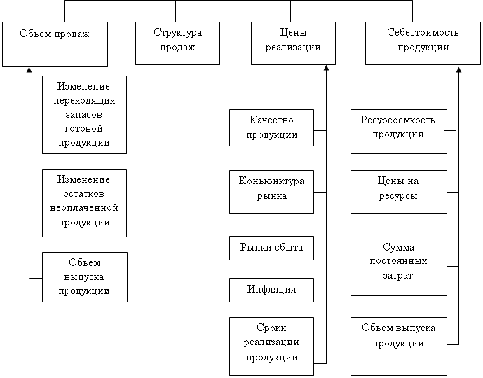 2. Методика анализа финансовых результатов коммерческой организации 2.1 Методика Савицкой Г.В. 2.1.1 Анализ финансовых результатов от реализации продукции и услуг Основную часть прибыли организации получают от реализации продукции и услуг. Структурно-логическая факторная модель прибыли от реализации продукции и услуг по Савицкой Г.В. (рис. 1) Рис.1.Структурно-логическая факторная модель прибыли