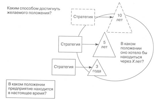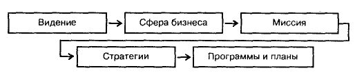 Рисунок 2 – Цепь перспективно-целевых решений в управлении развитием предприятия. Этапы стратегического управления. Основными этапами стратегического управления являются (рис. 3): 1. анализ среды; 2. определение миссии и целей организации; 3. формирование и выбор стратегии; 4. реализация стратегии; 5.