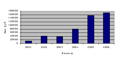 Рисунок 2.2 – Выпуск товаров и услуг в действующих ценах для внешних клиентов. Власть поставщика возможна в следующих случаях: когда покупатели сконцентрированы (в отрасли отсутствуют ресурсы-заменители); когда велика стоимость замены одного поставщика на другого; когда покупатели для поставщика не имеют большого значения. По данным таблицы 2.5 пункта 2.1 данного раздела видно, что в структуре поставщиков преобладает доля поставщиков-посредников (в 2005 г. их доля составила 61,2%, а в 2006 – увеличилась на 13,1%, и составила 74,3%). Это сказывается на политике ценообразования, т.к. приобретение сырья и материалов непосредственно у поставщиков-производителей обходится дешевле, чем через посредников. Поэтому заводу следует стремиться снижать удельных вес данных поставщиков и увеличить в их общем числе долю поставщиков-производителей, что позволит в дальнейшем удерживать позицию низких цен. Кроме того, «власть поставщиков» просматривается со стороны поставщиков уникальных комплектующих. Уровень конкурентной борьбы. Конкурентная борьба обычно возрастает, когда конкуренты ощущают давление или же видят для себя возможность улучшения положения в отрасли. Можно выделить основные факторы, ведущие к интенсивной конкуренции [50, 41]: существование сбалансированных конкурентов; существование на рынке «медленного роста»; низкие постоянные (накладные) затраты при условии наращения объемов производства на предприятии и повышения уровня использования мощностей; индивидуализации продукта (при отсутствии дифференциации продукции трудно предотвратить метание покупателей между конкурентами). Проанализируем уровень конкурентной борьбы относительно ОАО ВВРЗ им. Тельмана. Для этого рассмотрим факторы, усиливающие интенсивность конкурентной борьбы и оценим их наличие и степень влияния оценим по 5-ти балльной шкале (чем выше балл, тем сильнее его влияние). Результаты анализа приведены в таблице 2.9 и свидетельствуют о довольно высоком уровне конкурентной борьбы в исследуемой отрасли. Прямыми конкурентами завода являются производители пассажирских вагонов на базе существующих конструкций кузовов – Новороссийский вагоноремонтный завод, Октябрьский электровагоноремонтный завод в Санкт-Петербурге и Московский вагоноремонтный завод им. Войтовича. Следует отметить, что ни один из названных выше конкурентов не имеет каких-либо серьезных конкурентных преимуществ перед заводом им. Тельмана. С другой стороны, ВВРЗ является единственным предприятием России, где уже с 1994 г. серийно налажен капитально-восстановительный ремонт пассажирских вагонов (доля ВВРЗ на рынке КВР в 2001 г. составляла 90%, сейчас примерно 80%, т.к. другие предприятия также начали освоение КВР). Завод имеет также косвенных конкурентов – российских производителей новых пассажирских вагонов – Тверской вагоностроительный завод, ЗАО «Вагонмаш» в г. Санкт-Петербурге. Необходимо отметить, что названные предприятия имеют значительную производственную базу, научно-конструкторские бюро и, в дальнейшем могут составить серьезную конкуренцию заводу при его переходе на самостоятельное строительство ВНП. Таблица 2.9 – Оценка факторов, влияющих на усиление интенсивности конкурентной борьбы в отрасли вагоностроения.