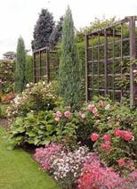 Важную роль на территории загородного дома, играют, конечно же, деревья и кустарники. Деревья для сада всегда выбирают с учетом их декоративности и сочетаемости в определенной растительной композиции. Образ жизни современного человека выводит на первый план декоративный сад с использованием декоративных, плодовых и декоративно-плодовых деревьев. Деревья для сада — это тот фактор, который в целом определяет пространственную структуру сада, его внешний вид в течение круглого года и на много лет. Вечнозеленые деревья смогут насытить сад цветом, подчеркнуть выразительность оголенных контуров листопадных растений в зимний период. Вечнозеленые деревья — это хвойные и лиственные деревья, у которых листопад и восстановление листвы (хвои) проходят постепенно, в продолжение 3-11 лет. Вечнозеленые деревья придадут саду монументальность и праздничный вид зимой. Примерное равновесие между вечнозелеными деревьями и лиственными породами — 50×50 позволит сделать сад красочным круглый год. В нашем саду использованы такие деревья как: ели, туи, можжевельники, кипарисы и д.р. Хвойники отличаются разнообразием в применении, неприхотливостью в уходе и долголетием. Вечнозеленые хвойные растения редко болеют или повреждаются вредителями. В нашем саду есть ель канадская «Коника». Во взрослом состоянии она достигает не более 3-ех метров, имеет строго пирамидальную форму и мягкую ярко-зеленую хвою.