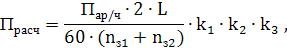 где Пар/ч – часовая производительность цеха, изд/ч; L – общая длина заготовок для одного изделия, м; nз1 – число одновременно обрабатываемых (по пласти) заготовок, шт; nз2 – число одновременно обрабатываемых (по кромке) заготовок, шт; k1 – коэффициент проскальзывания в механизме подачи; k1 = 1,02; k2 – коэффициент брака; k2 = 1,02; k3 – коэффициент использования рабочего времени станка; k3 = 1,04;