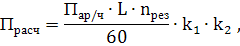 где Пар/ч – часовая производительность цеха, изд/ч; L – общая длина заготовок для одного изделия, м; nрез – среднее удельное число резов на 1м заготовки; k1 – коэффициент брака; k1 = 1,02; k2 – коэффициент использования рабочего времени станка; k2 = 1,04;